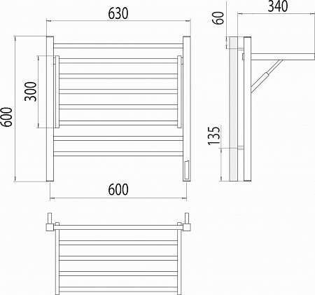 Горизонт П8 600х600 электро КС ЧЕРНЫЙ МУАР (sensor quick touch) Полотенцесушитель TERMINUS
